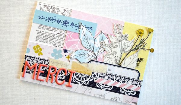 Bonjour, En janvier, l' Antre Scrap nous a proposé un sketch à adapter selon nos envies. J'en ai fait trois versions :) Voici la première : Elle est réalisé avec le négatif d'une découpe "page de carnet", et à part le nœud que j'ai tamponné et aquarellé,...